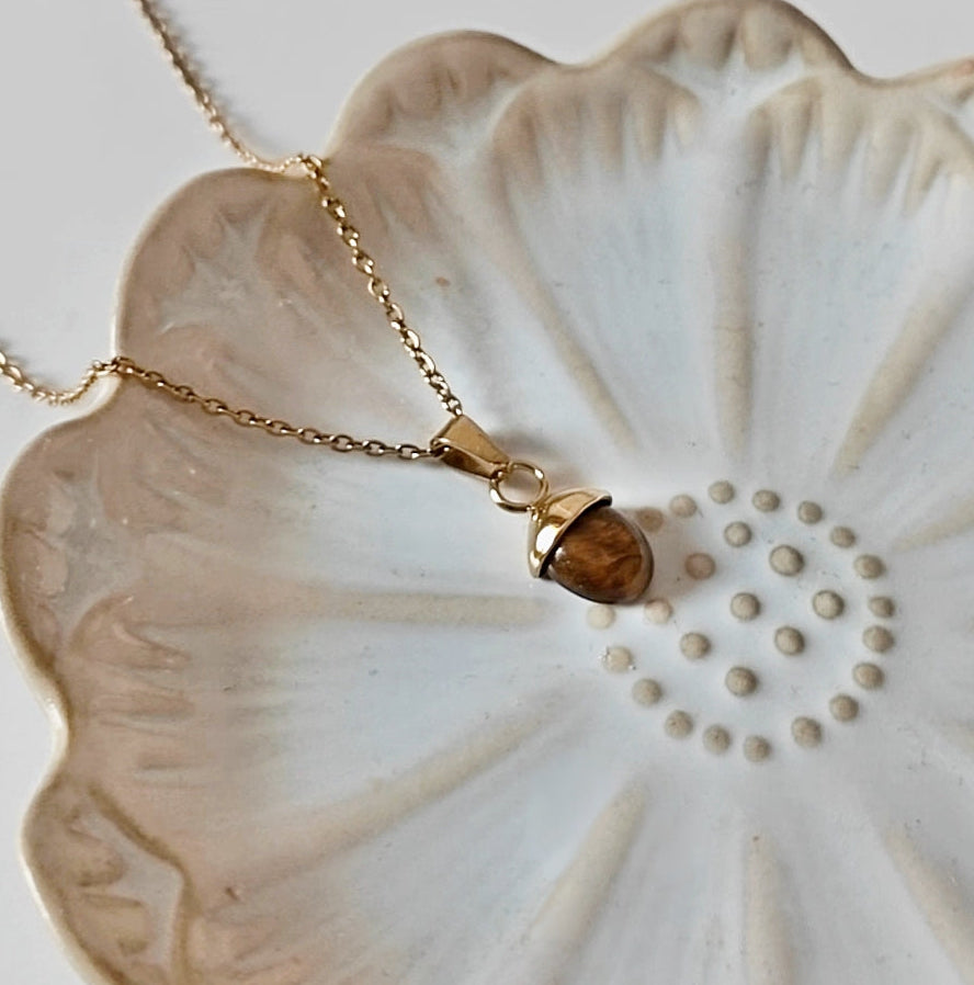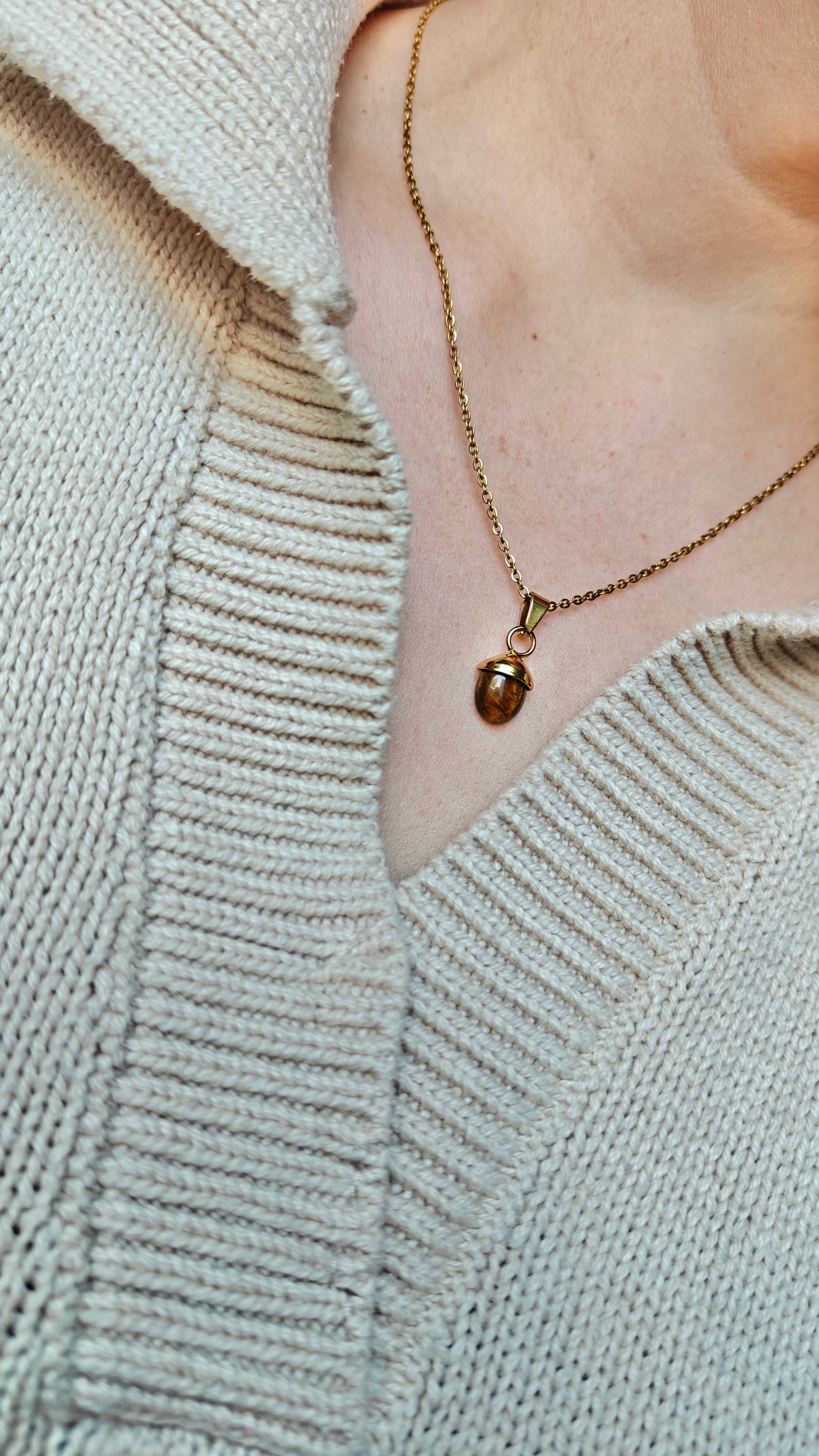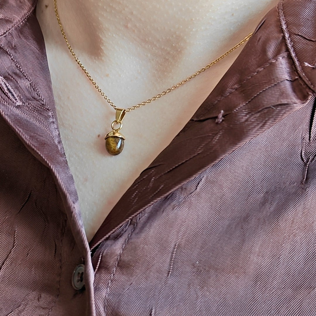 Nelysianin oman malliston tiikerinsilmä kivi ja kullattu ruostumaton ketju.